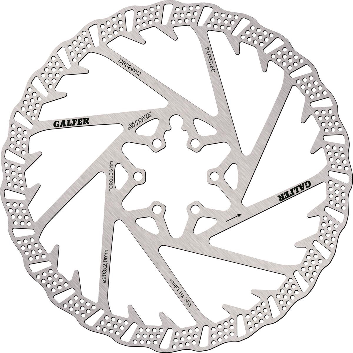 Galfer bringt mit seiner neuen und innovativen Shark Disc die vollkommenste MTB Bremsscheibe unserer Zeit auf den Markt. Durch den innovativen Produktionsprozess, mit Hilfe eines Laserschneiders, wird das optimale Design für bestmögliche Performance erzielt. Eines der wichtigsten Alleinstellungsmerkmale sind die innenliegenden Shark Fins (Kühlrippen), die der Scheibe ihren Namen geben. Im Zusammenspiel der Fins mit den vielen kleinen Lochbohrungen in der Scheibe kann die Hitzeentwicklung reduziert werden während das äußere Wellendesign und die seitlichen Öffnungen eine starke und gleichmäßige Bremsleistung ermöglichen.